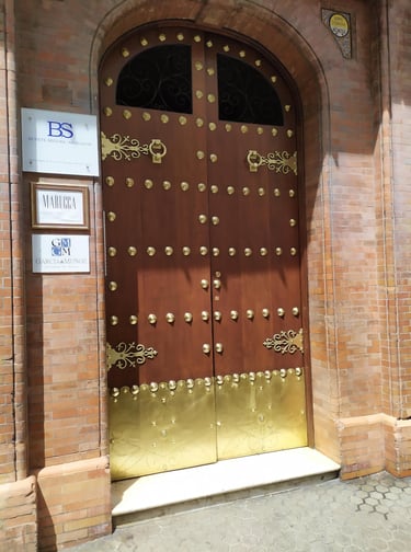 Esta puerta de madera maciza, ubicada en Calle Santa Ángela de la Cruz 3, mostraba evidentes signos de deterioro por exposición prolongada a la intemperie. Pérdida de color, barniz cuarteado, oxidación de herrajes originales y daños estructurales menores en la base y molduras. Elementos metálicos sin tratamiento protector ni brillo, afectando tanto la estética como la integridad funcional del conjunto.